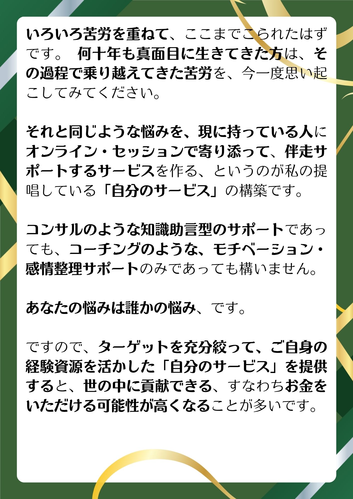 「自分のサービス」(コーチ、コンサル等)
