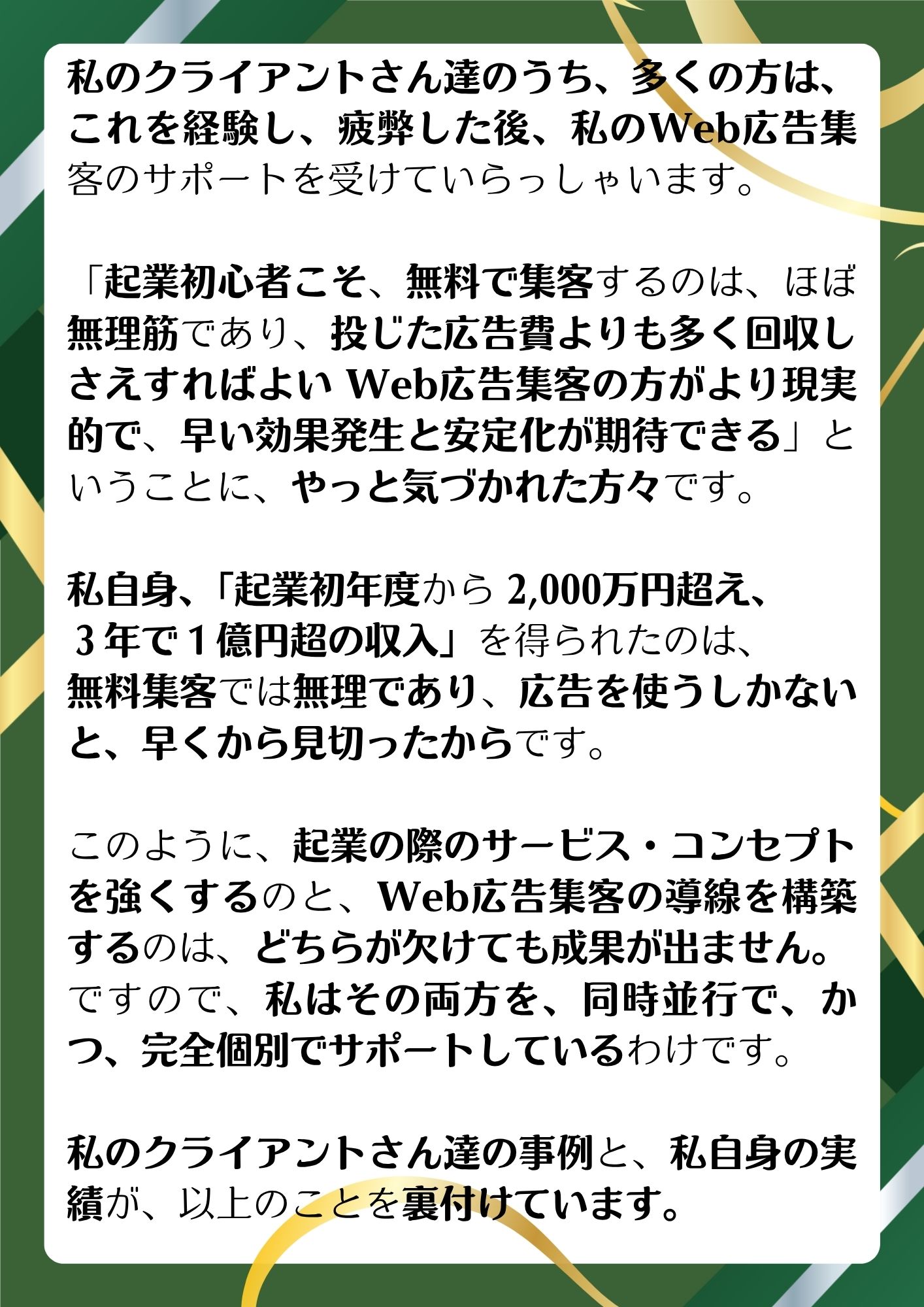 ※ 起業後3年で、1億円超の収入を得た私自身の経験を、成功事例の一つとしてご紹介しています。