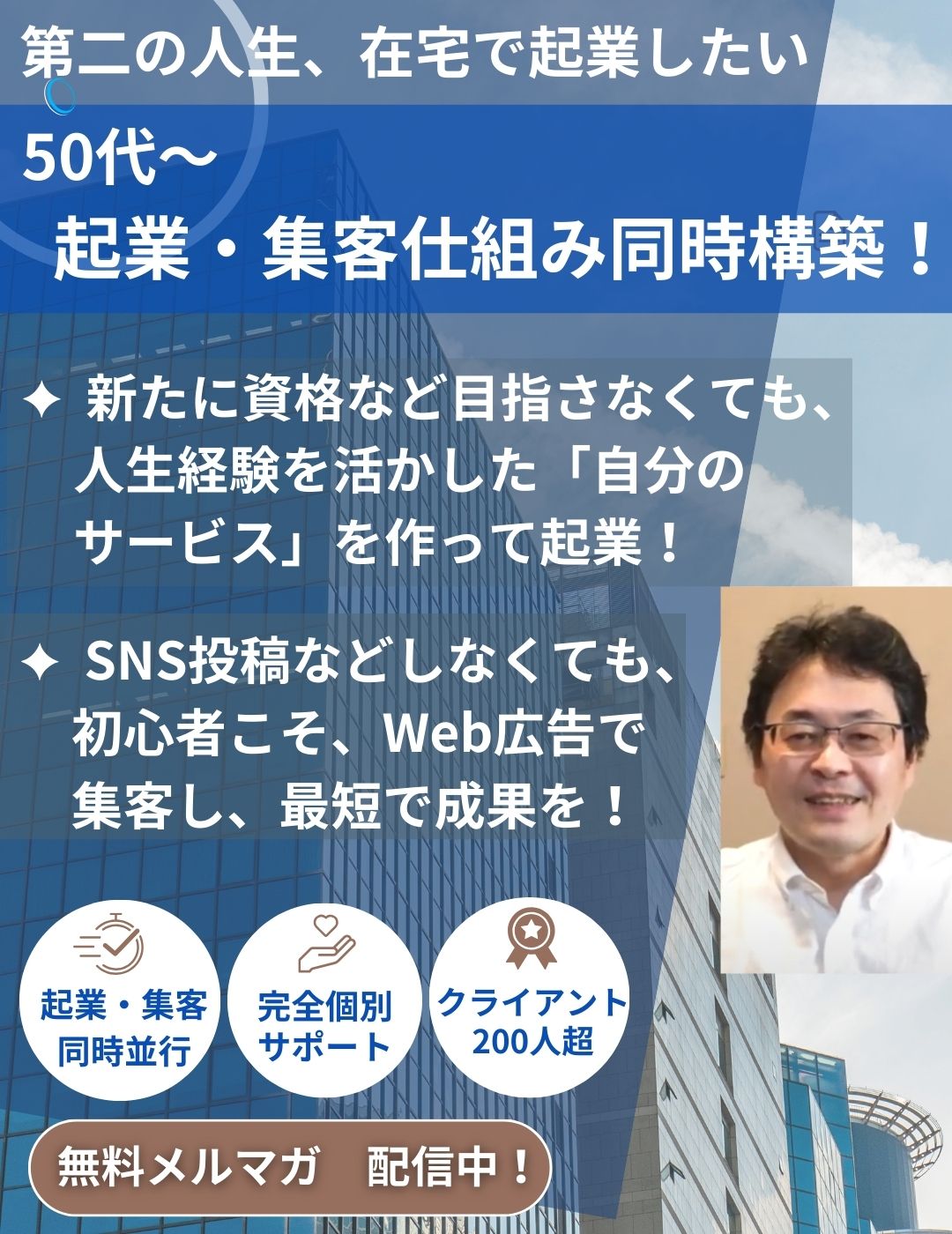 この無料メルマガでは、起業の際のサービス・コンセプトづくり、及びWeb半自動集客仕組み化の具体的なノウハウや事例などを配信しています。
